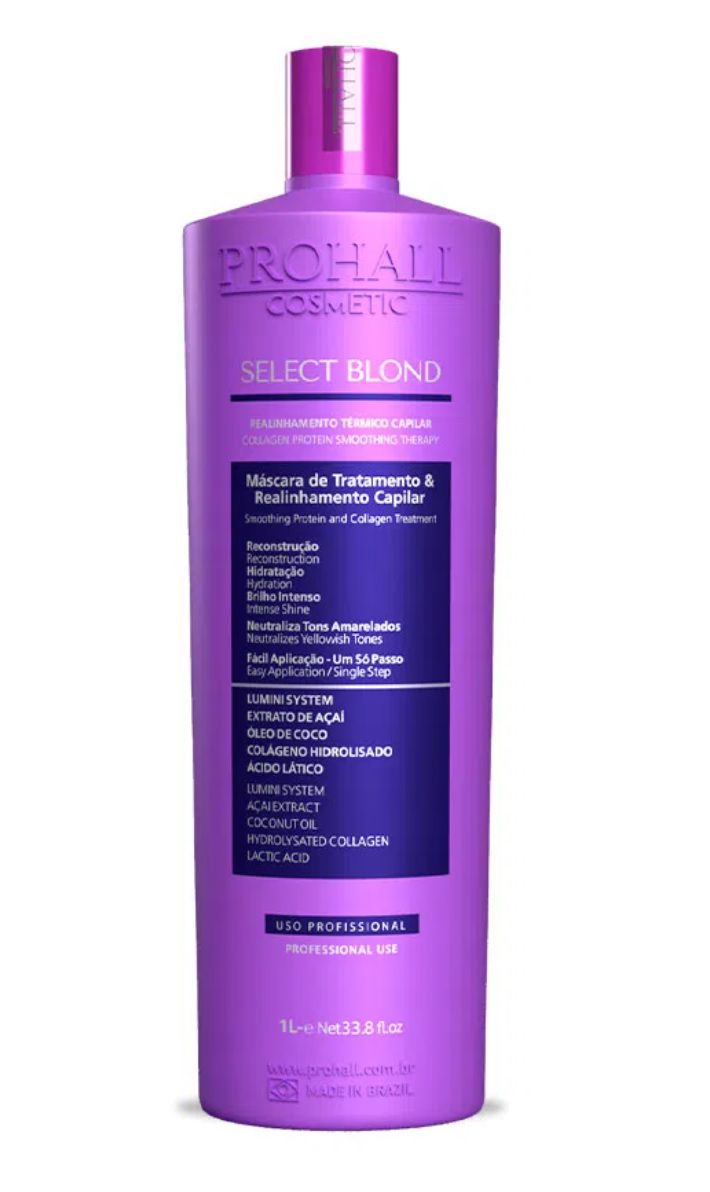 A Select Blond é desenvolvida com componentes de ponta, tendo o ativo Lumini System como principal pilar. O alisante age diretamente no núcleo dos fios e promove o realinhamento, a reconstrução e reparação de todos os danos provenientes de químicas e/ou de agentes externos (poluição, calor, raios UV e umidade).
