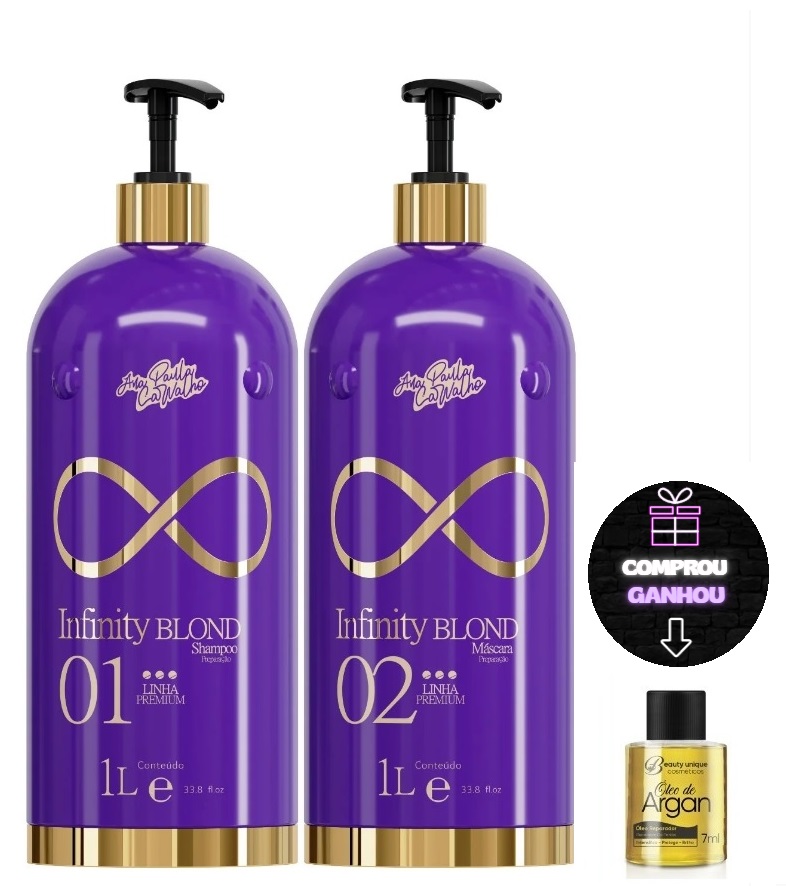 O Infinity Blond é um produto inovador que não desbota os cabelos brancos, ruivos, loiros ou platinados, desenvolvido para todos os tipos de cabelo é um produto 100% livre de formol que proporciona cabelos alinhados, maleáveis, brilhosos e sedosos. Enriquecido com uma exclusiva tecnologia + Ativos que tratam os fios de forma profunda – sistema inteligente que promove reestruturação da fibra capilar – O Infinity Blond elimina o volume dos cabelos enquanto trata e reconstrói os fios danificados devido a ação do tempo.